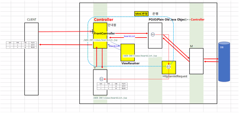 ( FrontController는 안내원 POJO는 알바생 같은 느낌! )