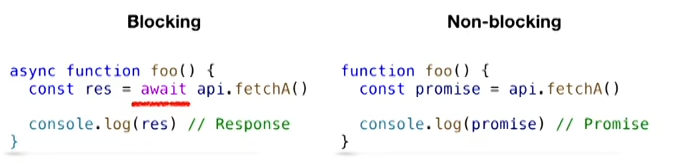 - Blocking 작업이 끝날 때까지 기다려주지만, Non-blocking은 작업이 끝날 때까지 기다려주지는 않는다.