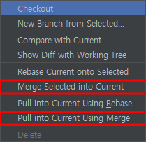 - 인텔리제이의 merge가 두 가지가 있다. 언뜻보면 두 개의 차이점이 없어보인다