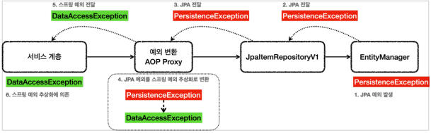 ㆍ예외 변환 AOP 프록시는 JPA 관련 예외가 발생하면 JPA 예외 변환기를 통해 발생된 예외를