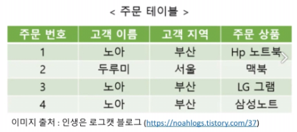 데이터베이스 기초CS ( Computer Science )/데이터 베이스 2022. 10. 13. 14:05- 현업에서 많이 사용하는 DB는 관계형 DB (RDB)와 비관계형 DB (NoSQL)로 나눌 수 있다. 관계형 DB- 일반적으로 많이 알려진 Oracle, Mysql, Mssql 등이 존재 ㆍ이들 중 DB를 활용해본 경험이 있는지 물어보는 것이 기본 시작 질문 - 핵심 개념 ㆍ행(Row), 열(Column), 스키마(Schema) ㆍ트랜잭션 (Transaction) ㆍPK, FK, Index ㆍ정규화 - 관계형 데이터베이스는 키(key)와 값(value)들의 간단한 관계를 테이블화 시킨 매우 간단한 원칙의 전산정보 데이터베이스이다. - 왜 관계형? ㆍ각각의 테이블들이 서로 관계를 맺을 수 있기 때문 ㆍTable : Row + Column + Schema - 열 ( Column ) ㆍ항목의 속성(명칭)을 나타냄 ㆍ각각 정수, 텍스트 같은 데이터 유형을 지정 - 행 ( Row ) ㆍ각 데이터 항목을 저장한다. - 스키마 ( Schema ) ㆍ필드는 데이터 유형 + 제약사항도 지정할 수 있는데 이러한 제약사항을 스키마라고 부른다. ㆍ예를 들어 필드는 unique 또는 not null등의 제약사항을 지정할 수 있다. - Table 예시  ㆍ위 테이블의 문제점이 있다면 무엇일까? ㆍ어떻게 수정하면 좋을까?  ㆍ주문 테이블 관리자는 이제 고객 번호만 가지고 주문을 처리할 수 있게 되었음 ㆍ테이블을 분리하고 중복 데이터를 제거하는 과정을 ' 정규화 ' 라고 한다. * 특정 테이블을 주고 정규화를 시켜보는 면접 문제 출제 가능. 제 1,2 정규화 등의 개념은 물어보진 않았음 - 정규화 목적 ㆍ불필요한 데이터를 제거, 중복을 최소화 ㆍ각종 이상 현상(Anomaly) 방지 - Join : 2개 이상의 테이블을 결합해서 한개의 테이블인 것처럼 출력 ㆍINNER JOIN : 조인하는 두 개의 테이블 모두에 데이터가 존재하는 행에 대해서만 출력 ㆍOUTER JOIN : 매칭되는 행이 없어도 결과를 가져오고 매칭되는 행이 없는 경우 NULL로 표시 - 인덱스 (Index) ㆍDB를 검색 속도를 빠르게 도와주는 역할 ( Binary Tree 방식 ) ㆍ인덱스는 B-Tree 방식 ( binary, 이진법 ) 구조를 사용하는데 이진법으로 0과 1로만 탐색하기 때문에 속도가 빨라서 사용 ㆍ그래서 Select 문의 where, join 에서 좋은 성능을 발휘함 ㆍ대신 insert, update, delete문에서 성능이 떨어짐 * 1. Index를 쓰면 성능이 좋아진다고 했는데, 모든 컬럼에 인덱스를 사용하지 않을까? * 2. 인덱스는 Binary Tree로 구현한다면 했는데, Hash Table을 사용하면 O(1)의 속도로 접근이 가능한데, 왜 그렇게 사용하지 않았을까? - Transaction ㆍ하나의 작업을 수행하기 위해 필요한 데이터베이스의 연산들을 모아놓은 것으로, 데이터베이스에서 논리적인 작업의 단위 ( commit / rollback 개념 숙지 ) ㆍ예시 ) 은행 ATM의 송금 - Transaction 4가지 특성 ( ACID ) ㆍ원자성(Atomicity), 일관성(Consistency), 격리성(Isolation), 지속성(Durability) - View 란? ㆍ테이블에 대한 일부 데이터들을 따로 추출한 가상의 테이블 ㆍ실제 데이터가 저장되는 것은 아님 ㆍ따라서 View로 구성된 내용에 대해 Insert, Delete, Update에 제약이 있음 - SQL의 종류 ㆍDML ( Data Manipulation Language ) : Select, Insert, Update, Delete ㆍDDL ( Data Definition Language ) : Create, Alter, Drop 등 ㆍDCL ( Data Control Language ) : Grant, Revoke 비관계형 DB ( NoSQL )- 기본적으로 관계형 DB와 반대되는 접근 방식 - 스키마 없음 - 관계 없음  - 대표적으로 MongDB나 CouchDB 등이 있음 - Key, Value로 구성되어 있어서 json 형식과 비슷 - 대용량 데이터 처리에 효과적 - RDB에 비해서 Read, Write가 빠름 - 복잡한 데이터 구조를 표현하기 좋음 - 확장성이 좋음 ( 스키마가 없기 때문 ) - Cf. 위 예시는 Document Database의 특징, 요즘에는 Graph Database 개념도 등장 * 데이터 베이스는 개념과 내부 구현 원리도 파악하기
