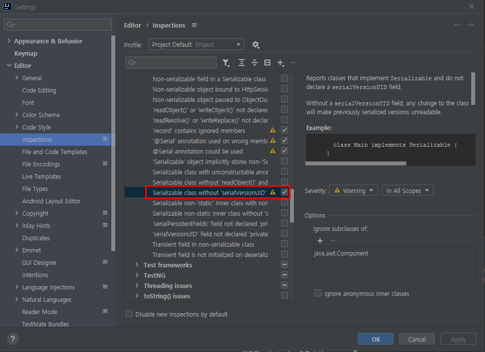 ㆍ직렬화 후 클래스가 변경되면 역직렬화가 불가능하다.