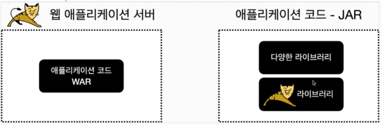- 애플리케이션 코드 안에 톰캣 같은 WAS가 라이브러리로 내장되어 있다는 뜻이다.