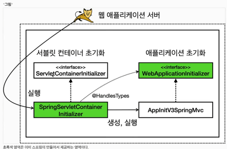 - 따라서 스프링 MVC를 사용한다면 `WebApplicationInitializer` 인터페이스만 구현하면 편리하게 애플리케이션 초기화를 사용할 수 있다.