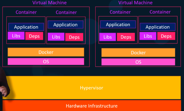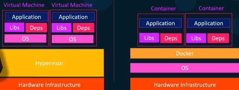 - Docker는 같은 하드웨어 상에서 다른 운영 체제를 가상화하는 것이 아니라 애플리케이션을 패키지화하고 컨테이너화해서 원하는 만큼 실행할 수 있도록 배포하는 것이다.