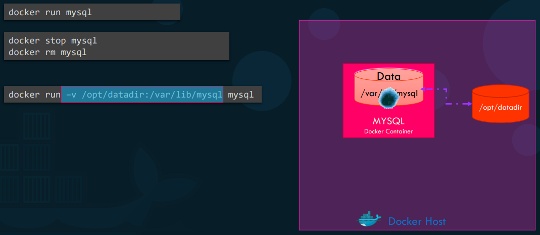 - 이렇게하면 모든 데이터가 외부 볼륨인 /opt/datadir에 저장되고 Docker 컨테이너를 삭제해도 데이터는 유지된다.