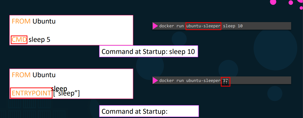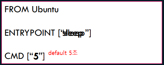 docker run --entrypoint sleep2.0 ubuntu-sleeper 10ㆍ--entrypoint 옵션을 사용하여 재정의