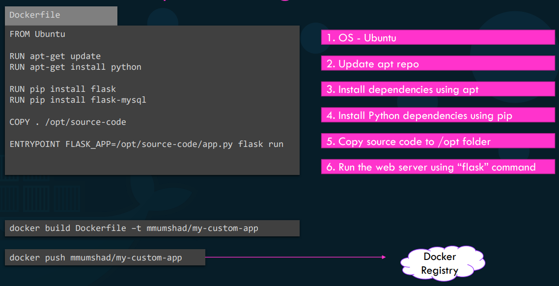 - 애플리케이션에서 사용하려는 컴포넌트나 서비스를 Docker Hub에서 찾을 수 없기 때문에 혹은 개발 중인 애플리케이션을 도커화해서 배포가 쉽도록 만들고 싶기 때문이다.