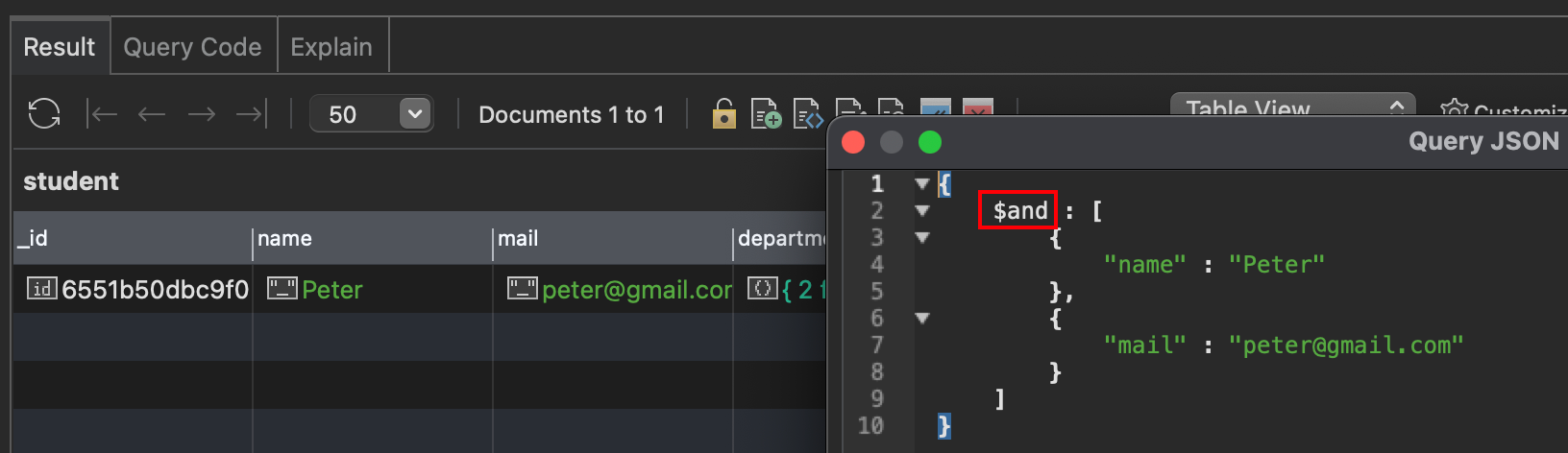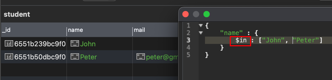 - MongoDB에서는 Json 형식으로 키와 값이 채워진 형태로 검색한다.