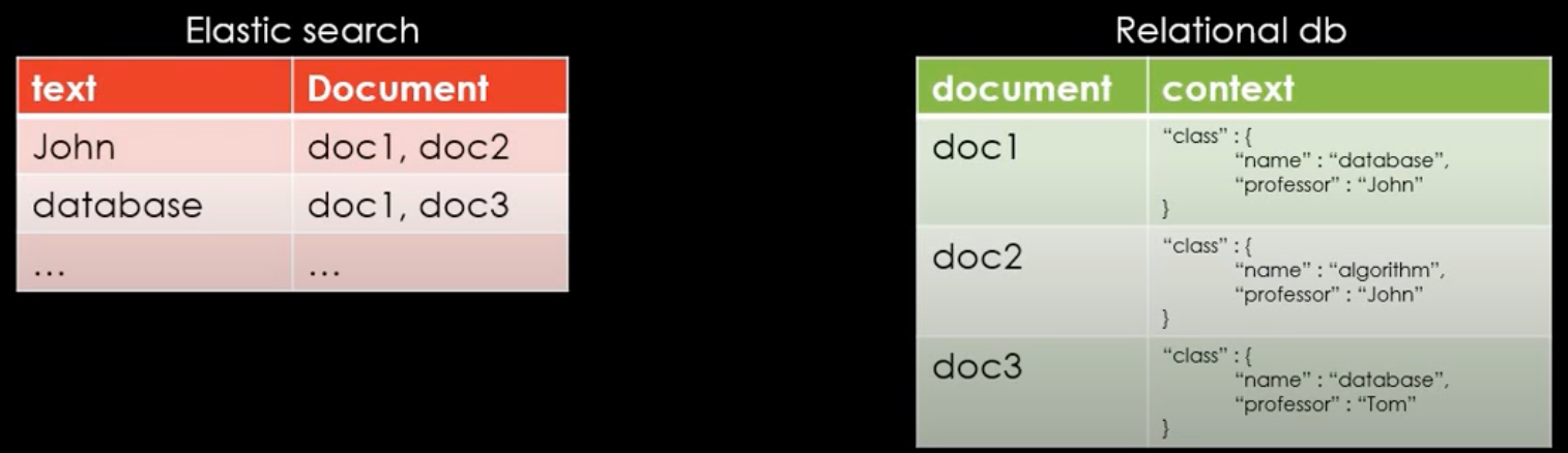ㆍ엘라스틱서치는 text만 조회하여 document를 가져오기에 더 빠르게 검색할 수 있다.