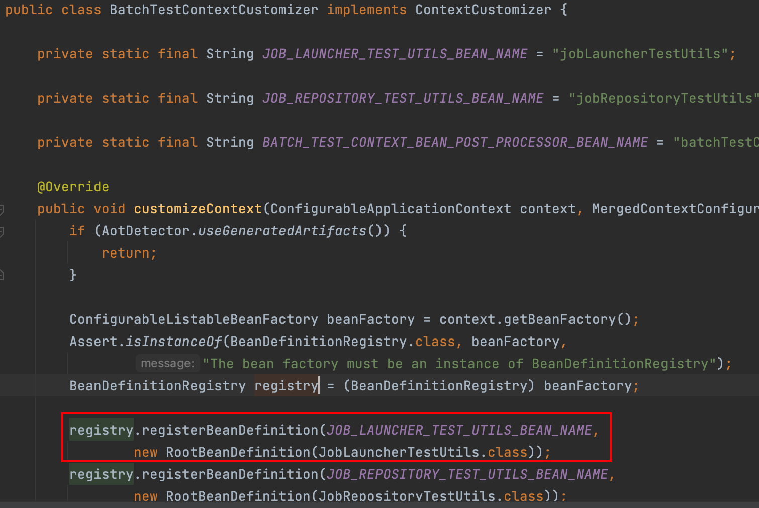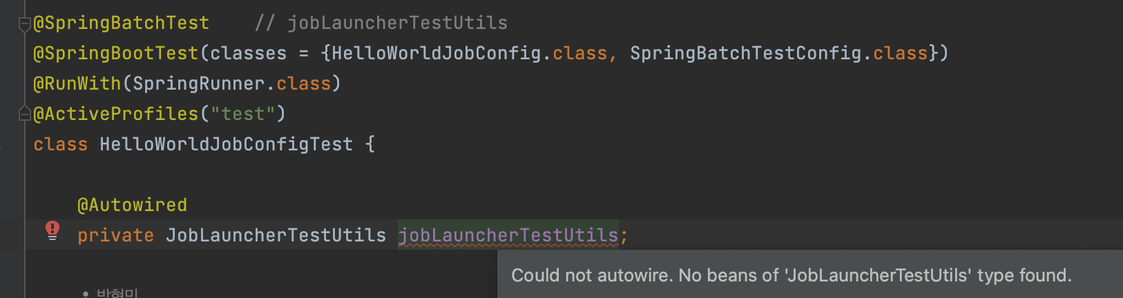- 일단 JobLauncherTestUtils 를 bean으로 등록하는 부분을 찾아보면...