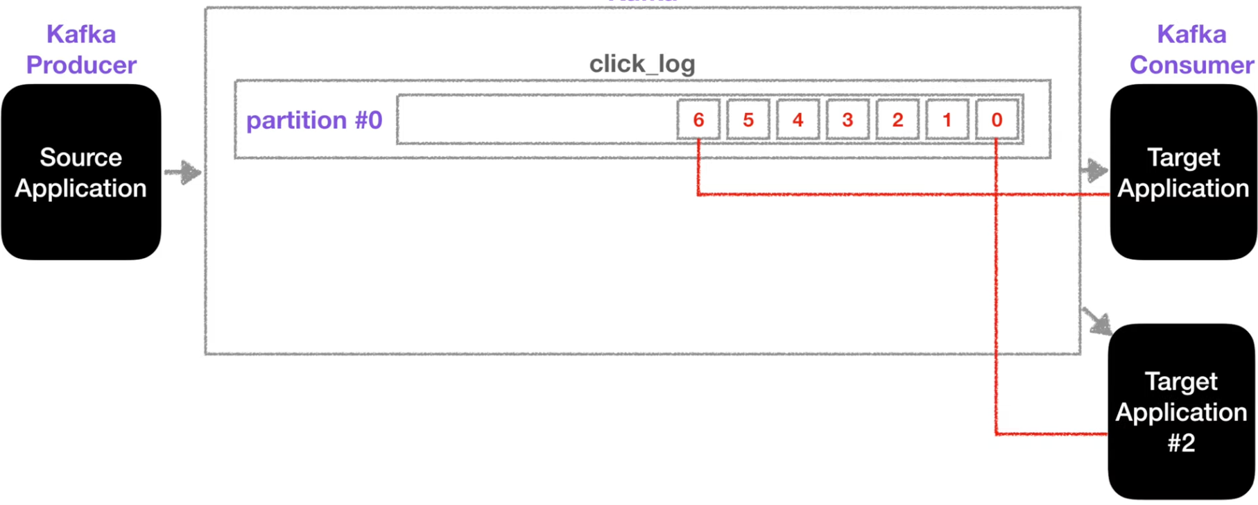 - 카프카는 Source Application(클릭로그, 결제로그) 과 Taget Application(로그적제, 로그처리)의 커플링을 약하게 하기 위해 등장!