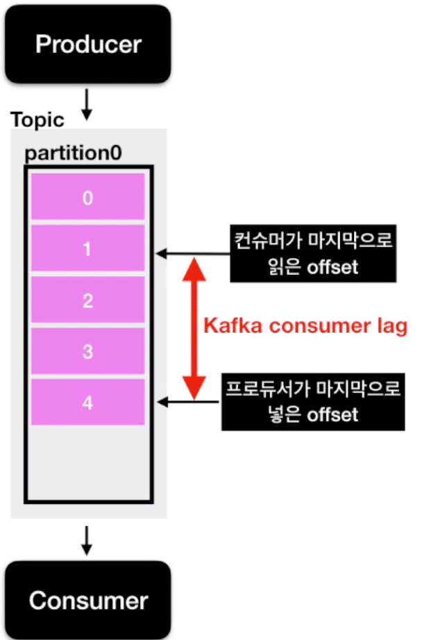 - lag은 각 파티션의 오프셋기준으로 프로듀서가 넣은 데이터의 오프셋과 컨슈머가 가져가는 데이터의 오프셋의 차이를 기반으로 한다.