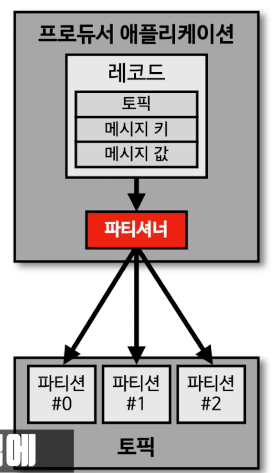 - 파티셔너는 데이터를 토픽에 어떤 파티션에 넣을지 결정하는 역할을 한다.