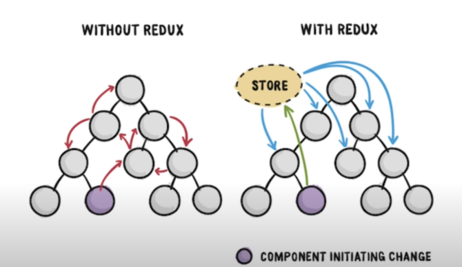 모든 컴포넌트는 중앙의 데이터저장소에 저장 / 컴포넌트 변경에 따라 모든 컴포넌트 영향을 받음