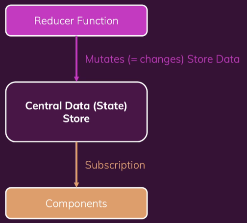 - Reducer Functions : 저장소 데이터의 업데이트 담당