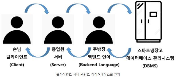 -> 백엔드 언어는 로직에 맞춰 DBMS으로 부터 필요한 데이터를 얻는다.